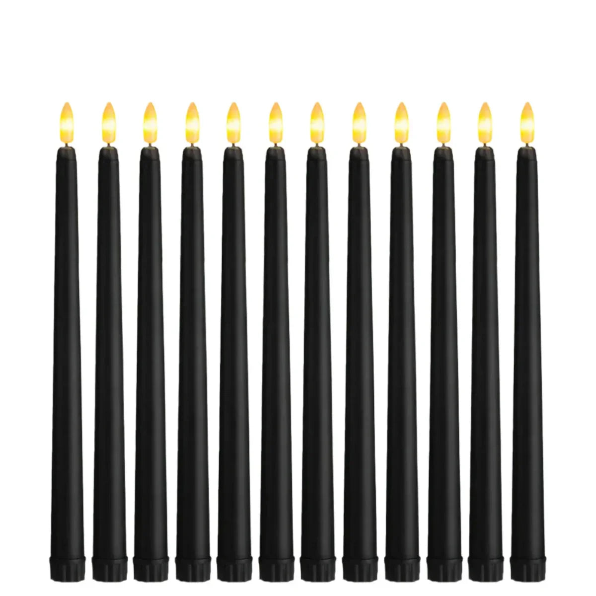 - Pack of 12 to 240 Primflora black LED taper candles (depending on selected option)